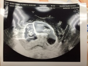So when we went in for our first ultrasound, I was very nervous. Garen kept reassuring me that it would be fine. As I lay there during the ultrasound, the doctor took a very long time probing before saying anything. So long that I got nervous something had happened to the baby. Instead, a moment later she asked, “How do you feel about twins?” And she showed us this….