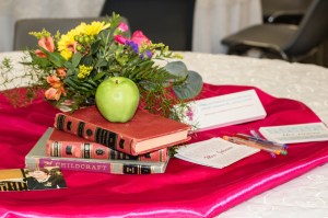 The party had a beautiful teacher theme, complete with a display of teaching memories they’ve collected over the years. Each table had photos of them and notecards for guests to write best wishes, thoughts, and memories to the two ladies. I know they have enjoyed reading these and that they will be cherished.