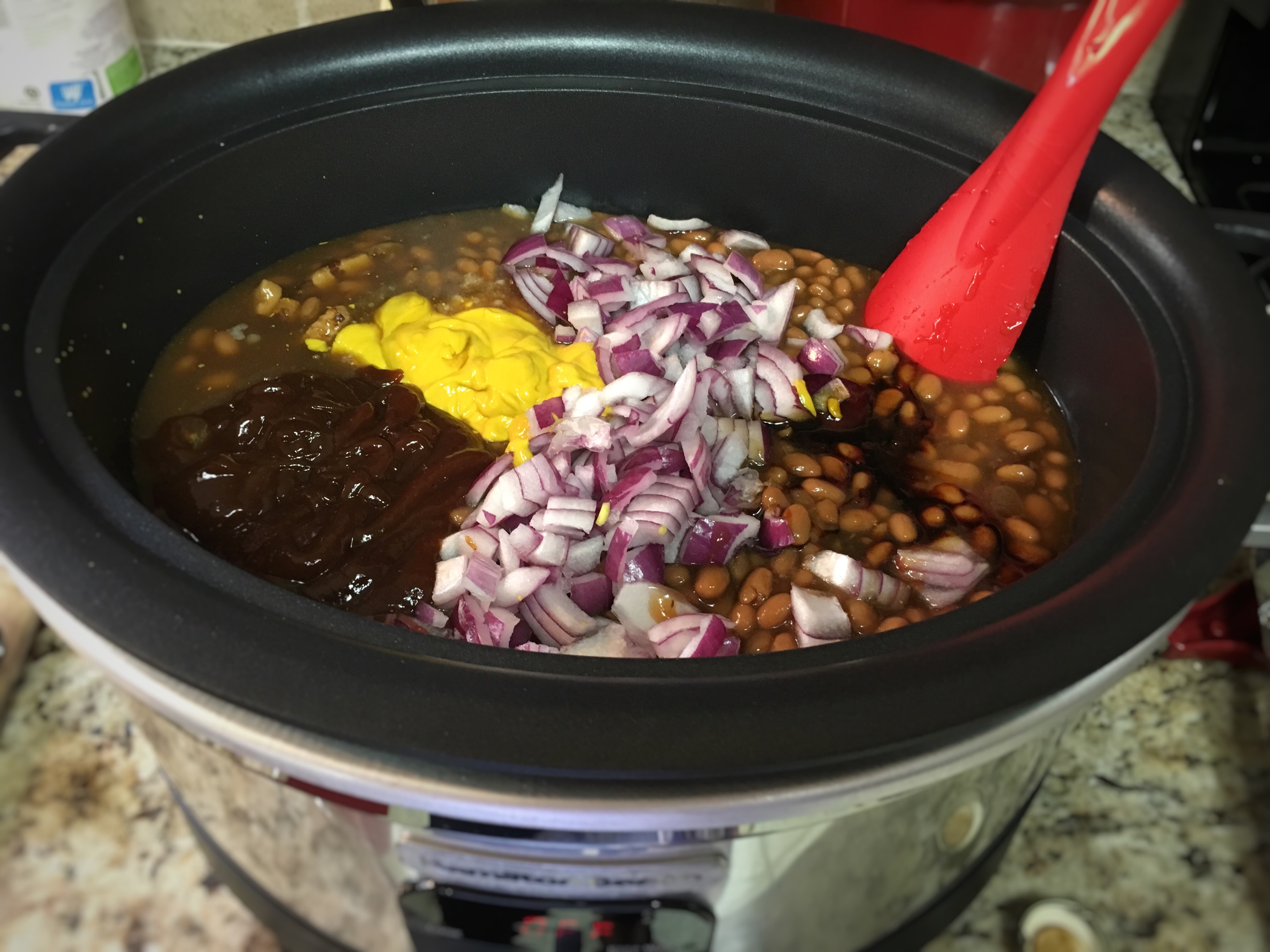 We had family and friends over after Anna’s dance recital tonight for burgers. I needed a side dish and I love baked beans with burgers. But I was at the recital and I didn’t feel like using the oven since it’s so hot.