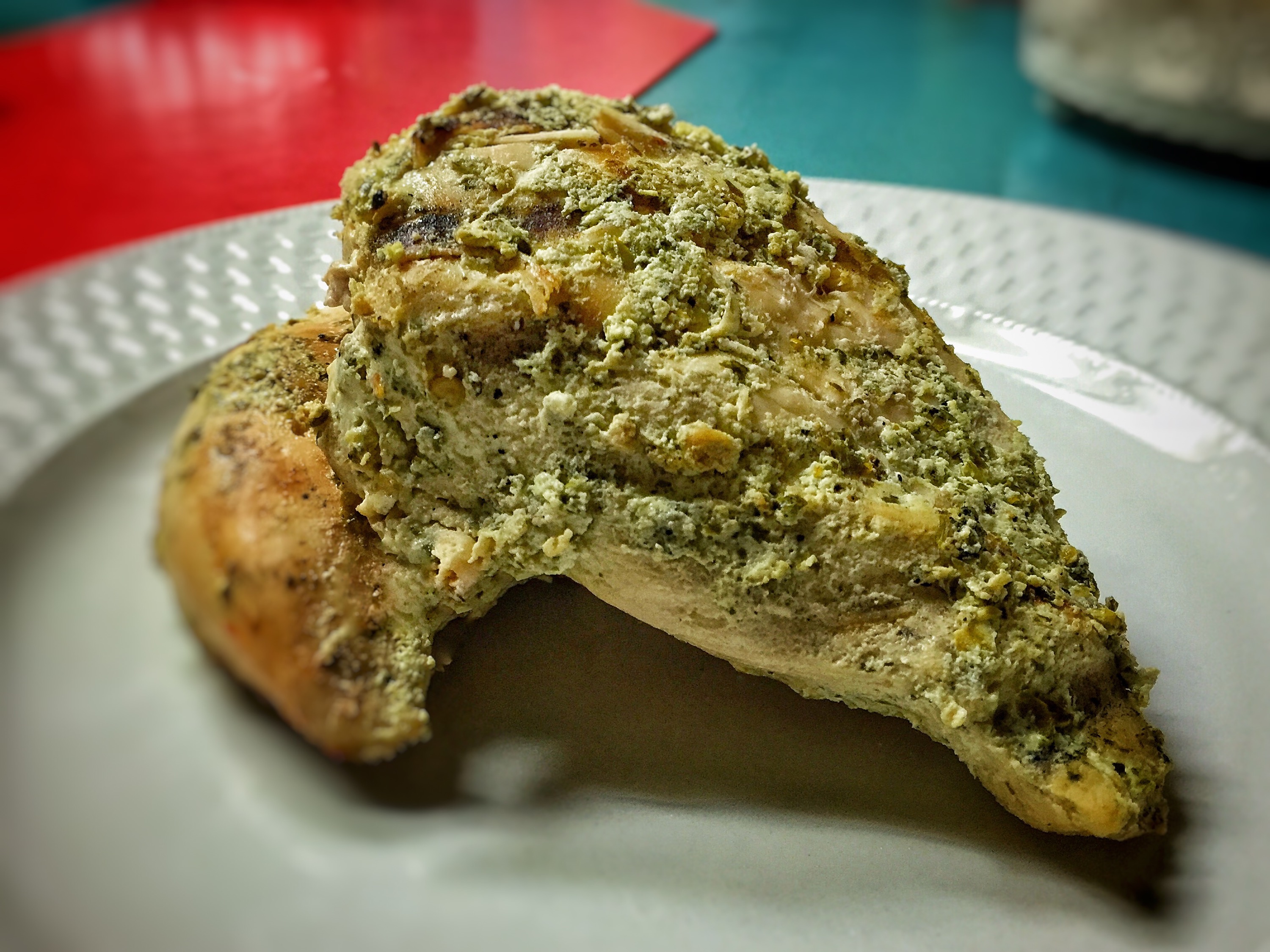 Put the chicken into a ziplock bag. Put all other ingredients into the food processor to mix. You could chop everything finely and mix in a bowl if you don’t have a food processor. Once mixed, pour into ziplock bag and marinade for 1-2 hours.