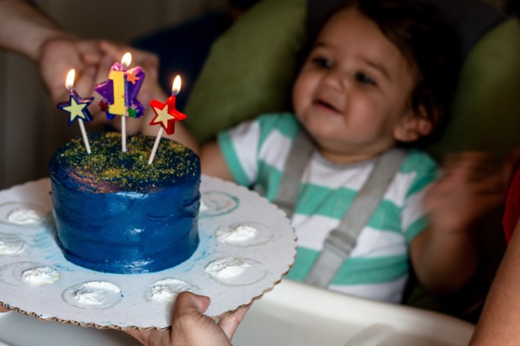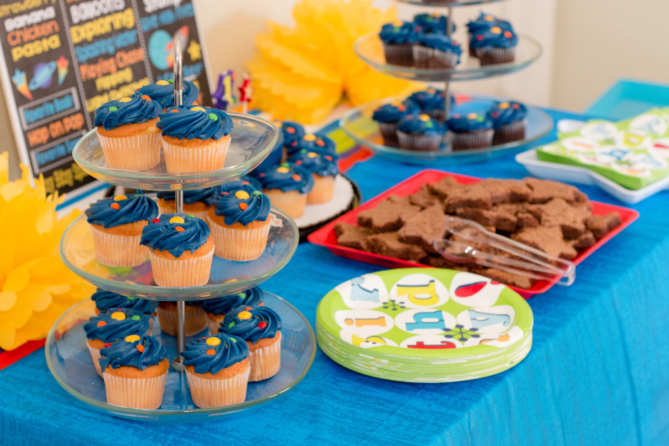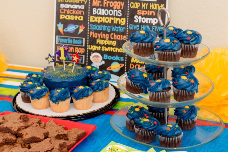 Jasmine did a great job decorating with the astronaut theme despite it being a challenge to find little kid space party supplies. It was so precious.