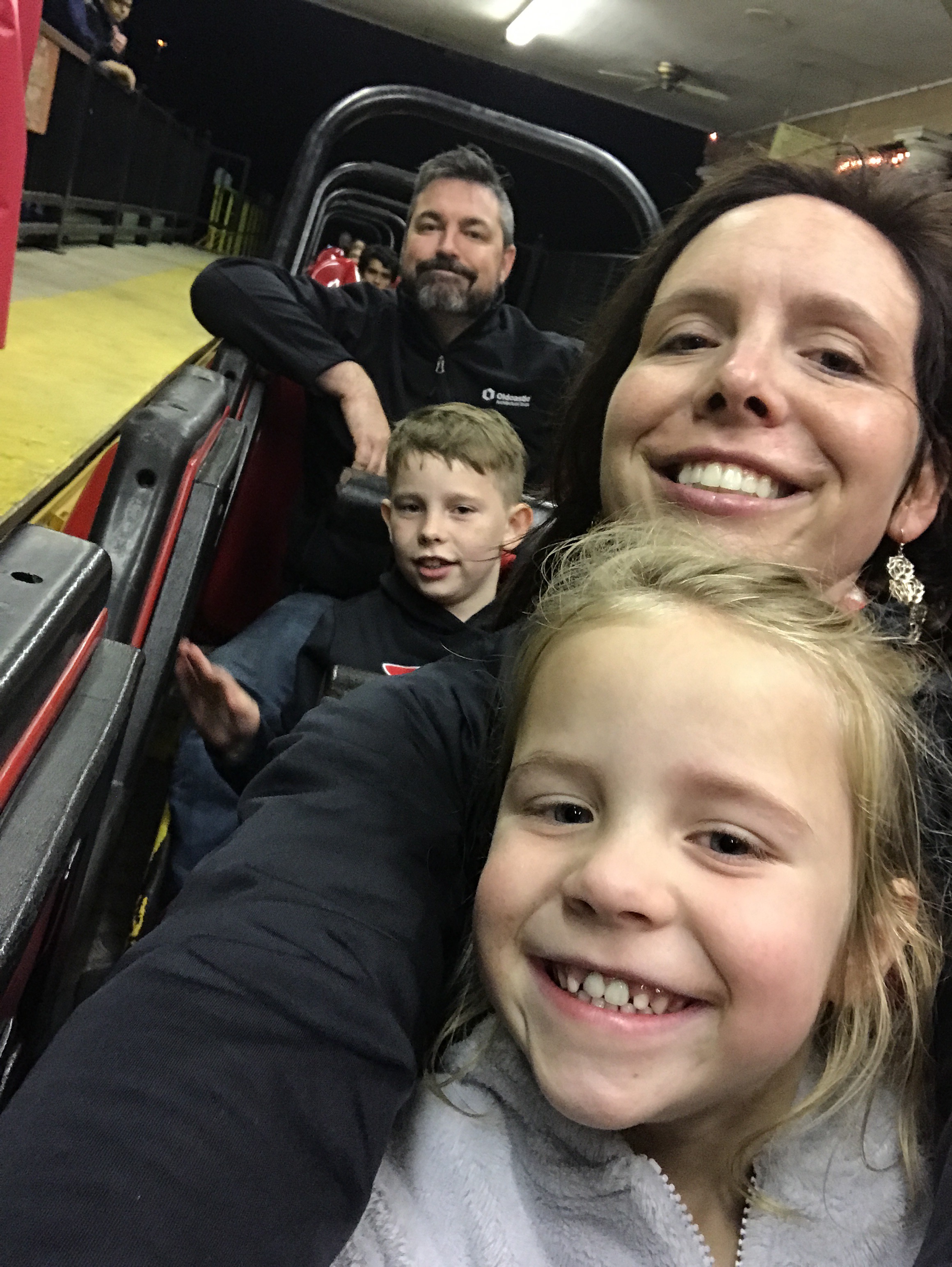 Anywho…enough about me justifying how much we spent on it all. We had a BLAST! The kids are both old enough to ride a lot of the rides. The first one we rode was the bob sled. I’m not sure what it’s technically called now but I had forgotten how fun it was. Check us out….Garen looks excited, right?!?