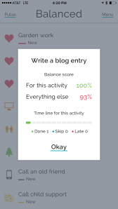 It’s got suggestions on how to keep a balanced life. It allows you to set how many times per time period you want to do something. For example, one of my goals this year is to write 3 blogs a week. (I can try right?!?) I easily track each blog post in the app and it keeps up with my progress towards my goal.