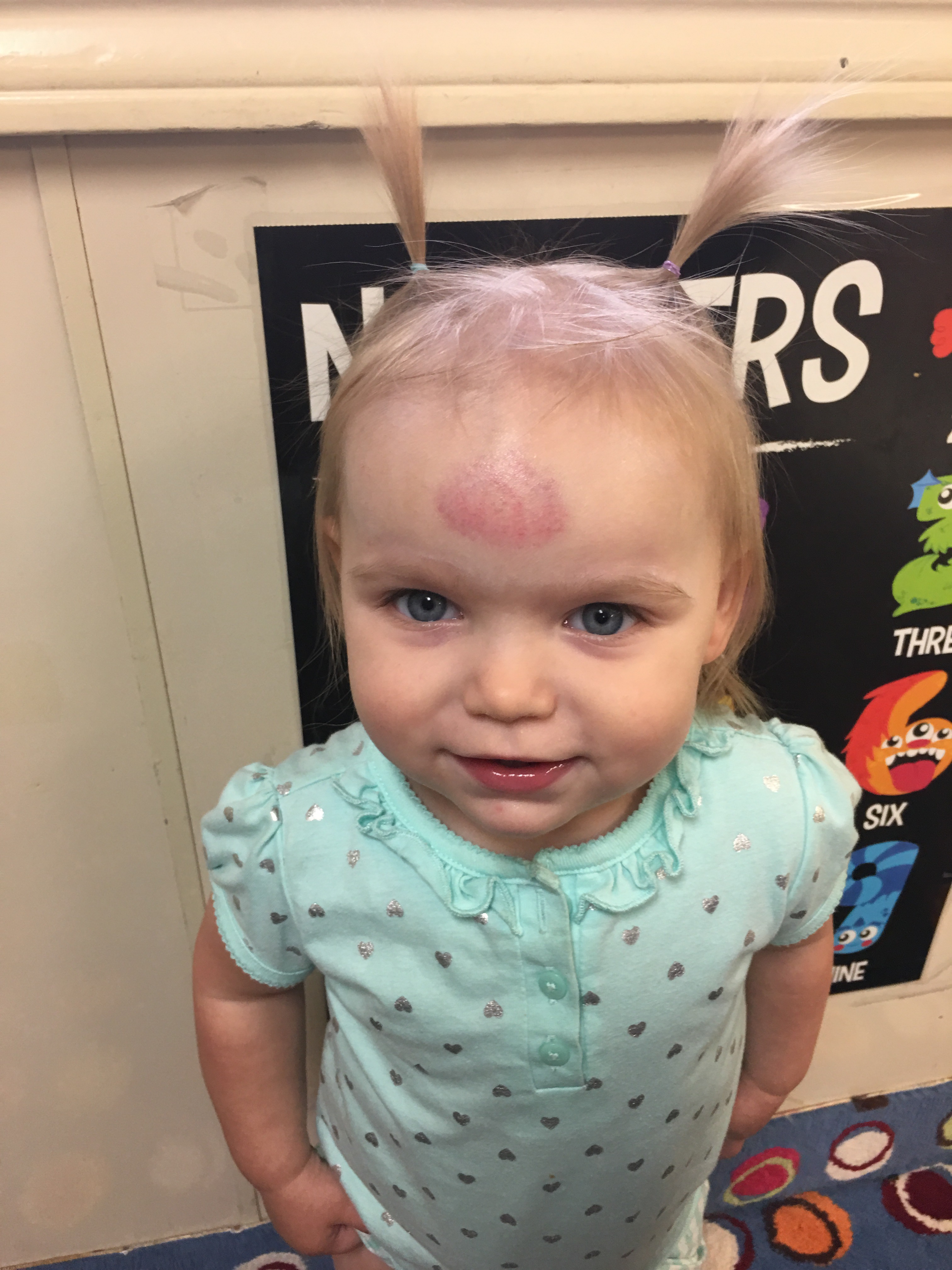 Does she look like she’s wearing it like a badge of honor??? “Look at me! I’ve got a super hard head.”