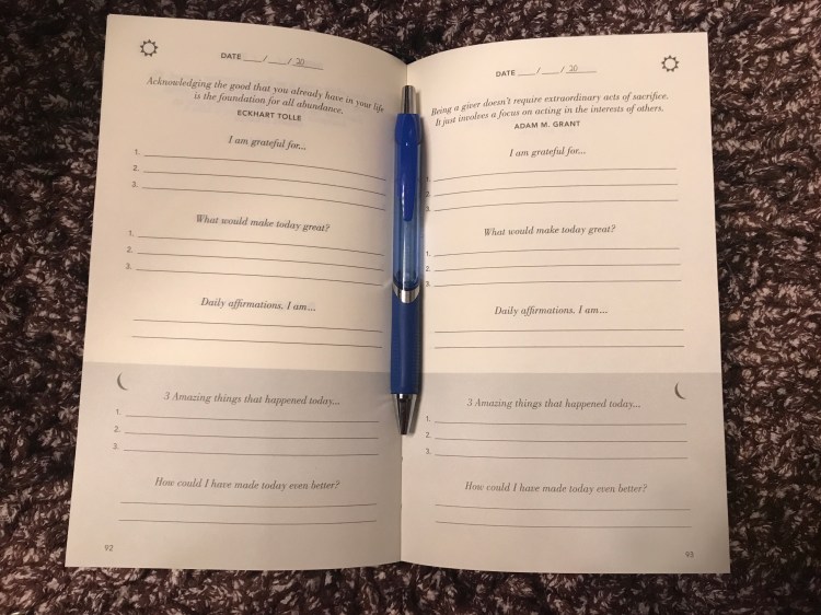 A few days back I posted about my new journey using The Five-Minute Journal and said I’d let you all know how it’s gone for 5 days- and now it’s been more than that but I decided to wait to post on Mommy Review Monday.