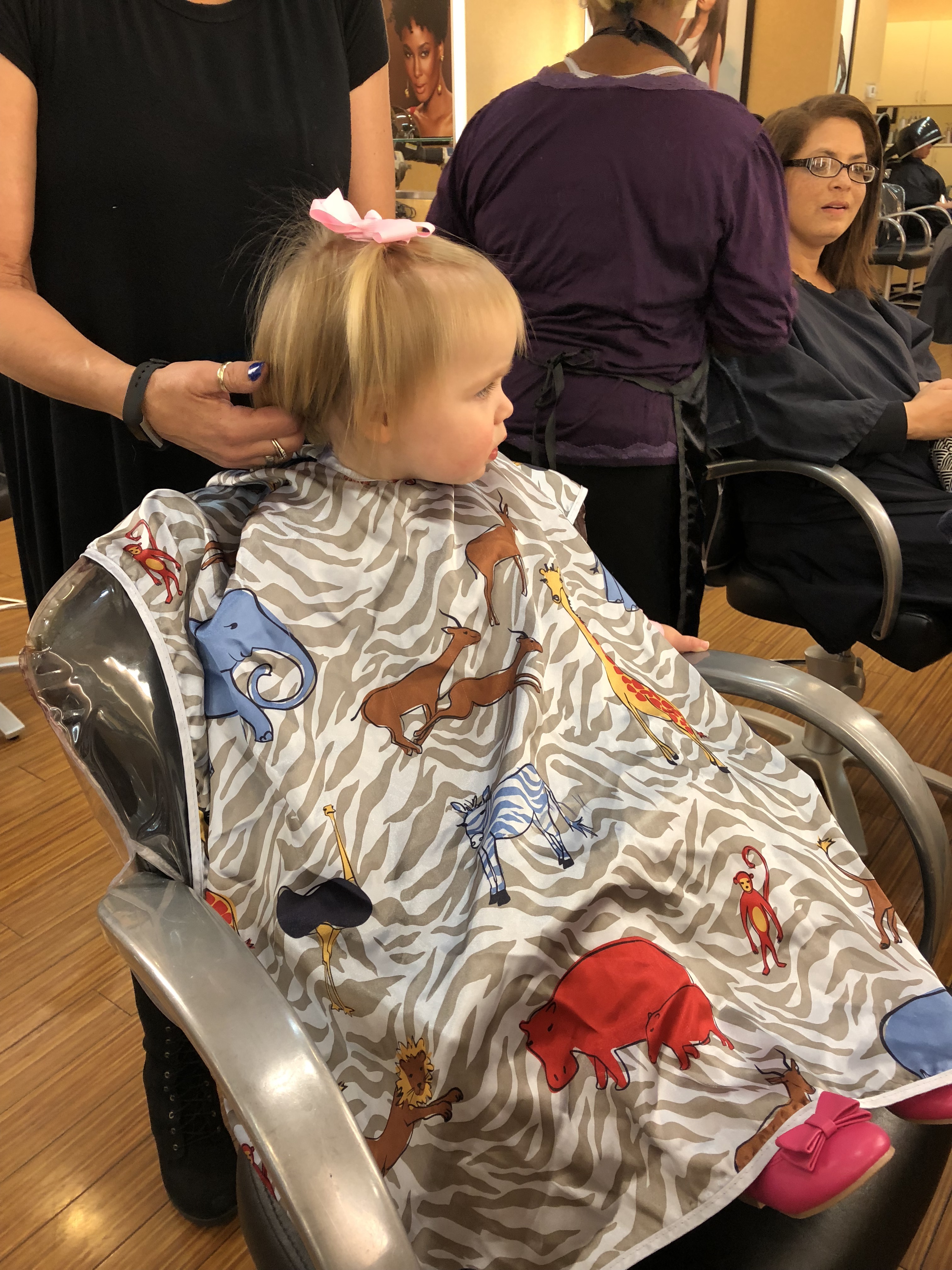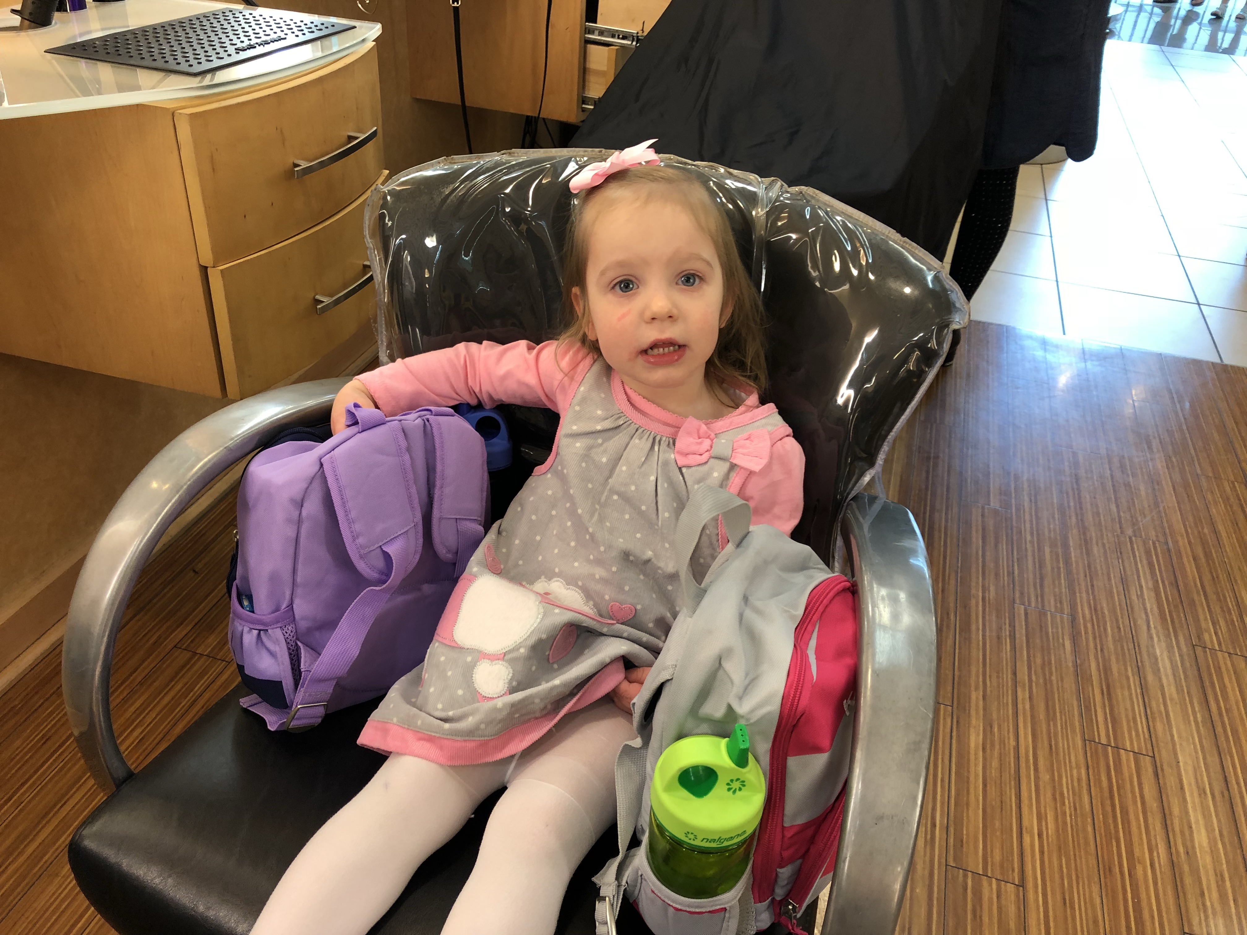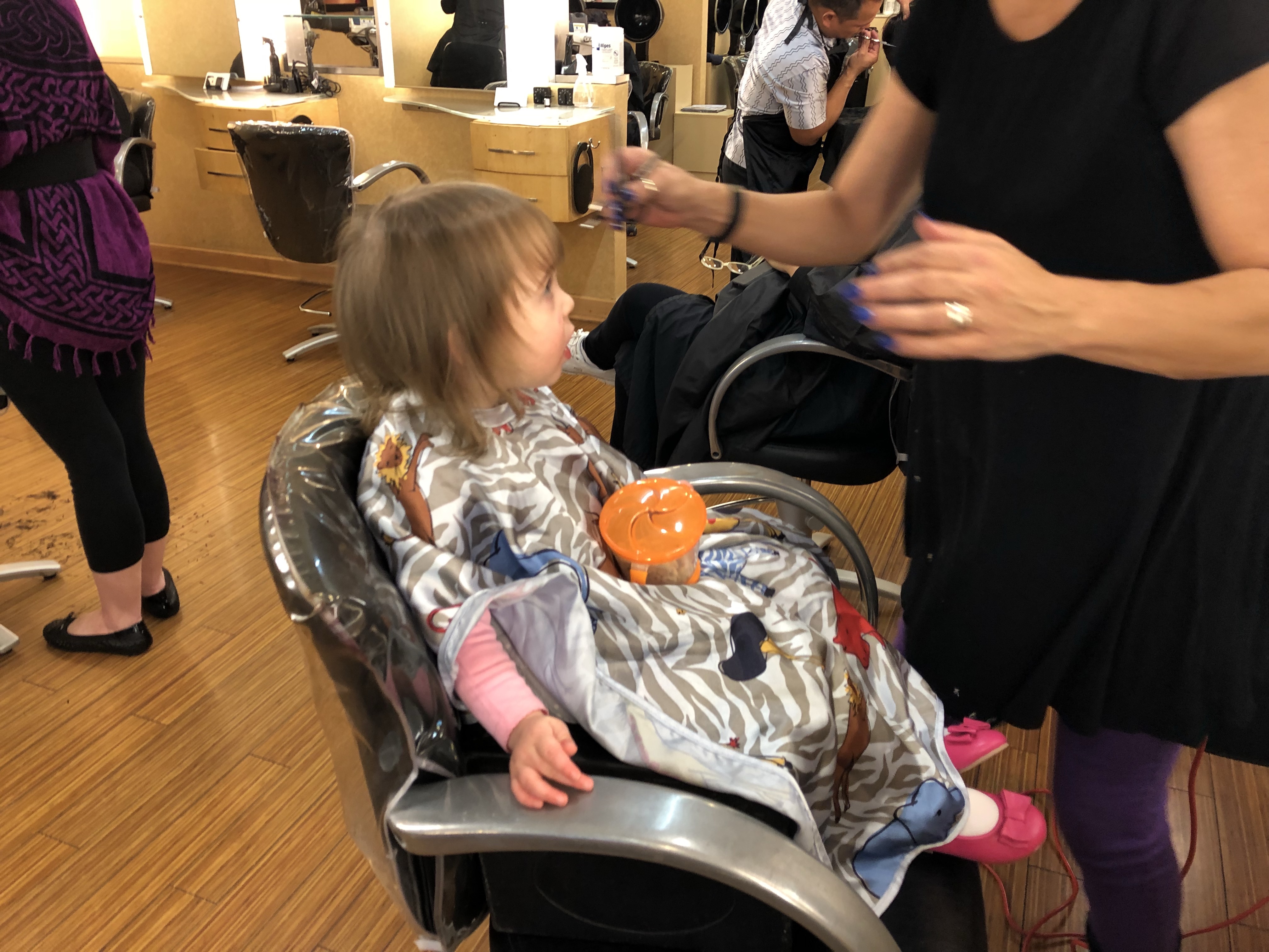 - Go somewhere they know you. This may sound trivial but the whole team at Regis knows me and my family, so they welcomed them in, which made the girls feel special. It did cost more than I typically would want to spend on a kids haircut but it’s better than having a freaked out kiddo.