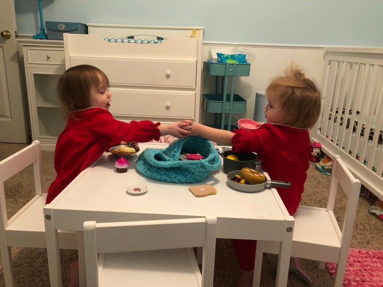 As you can see, we moved their rooms around so that they now have Anna’s kitchen and table that she’s “too big for” now. If it didn’t make these two so happy that might make me a bit sad. Such is life!