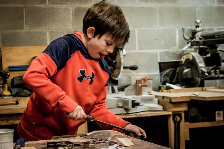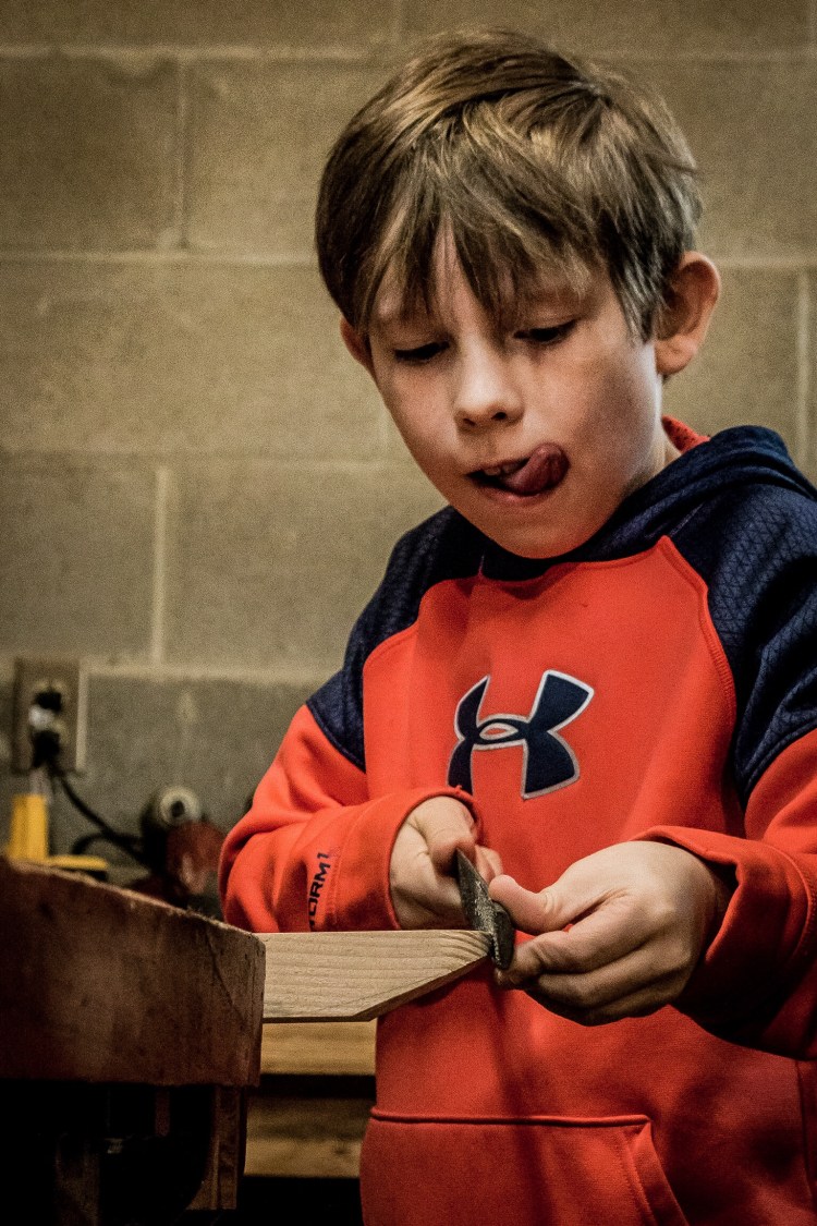 Plus, it’s a great opportunity for them to use all of Dad’s toys in his shop. Garen caught some good photos of the two. I love how Will sticks his tongue out when he is focused on what he’s doing. Pretty cute!