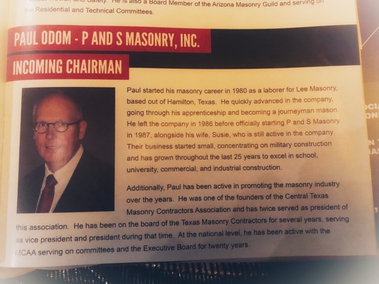 Congratulations to my Dad, Paul Odom, Chairman of MCAA, and to my mom, Susie, the First Lady of Masonry.