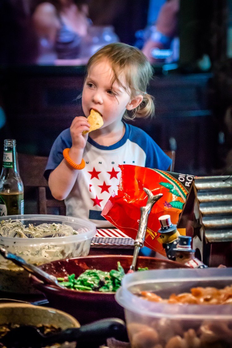 The girls sported their red, white, and blue outfits. Frugality tip: wait until a few days before the holiday and resale stores usually run great sales. We got these shirts for $1 each. New stores often do the same thing. My friend, Paige, scored adorable ones for $3.99 from either Gymboree or the Children’s Place (I can’t remember). Plus, unlike some of the other holidays, these are easier to wear throughout the year.
