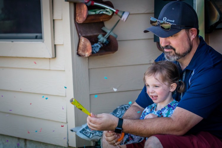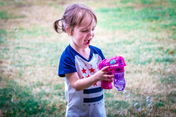 Aunt Haley had a sprinkler going, fully loaded bubble guns, and poppers (since we’re in a burn ban, plus two year olds and real fireworks aren’t always the greatest combo).