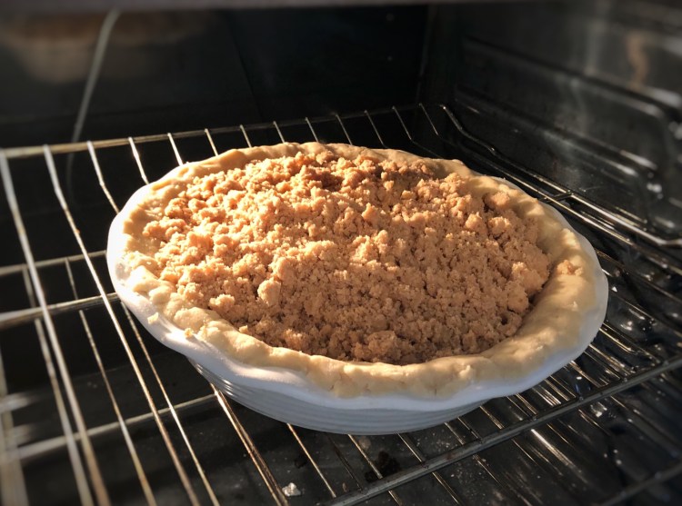 - Bake the pie until the crust and topping is golden brown and the blueberry filling just begins to bubble, 45 to 55 minutes.