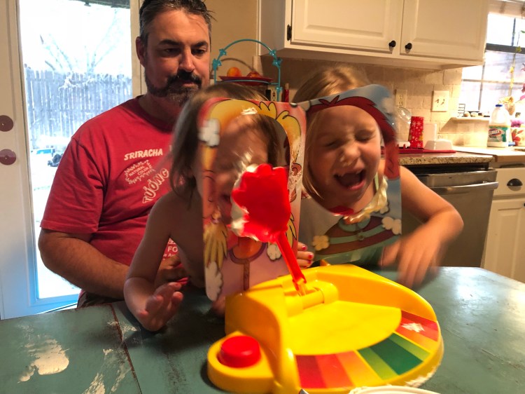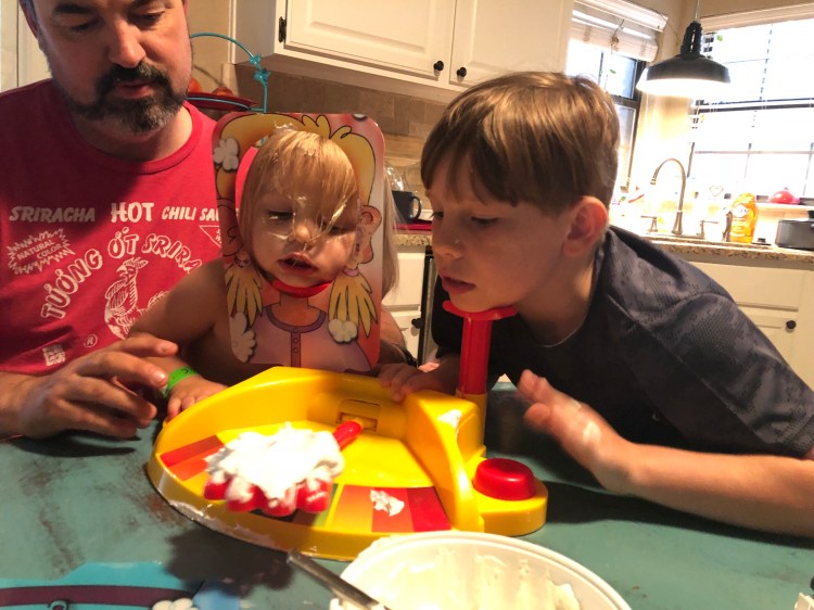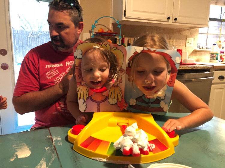To add a little more sweetness to our night and go along with the pie theme, we played the Pie Face Showdown. I had forgotten how much fun this is for the kids.