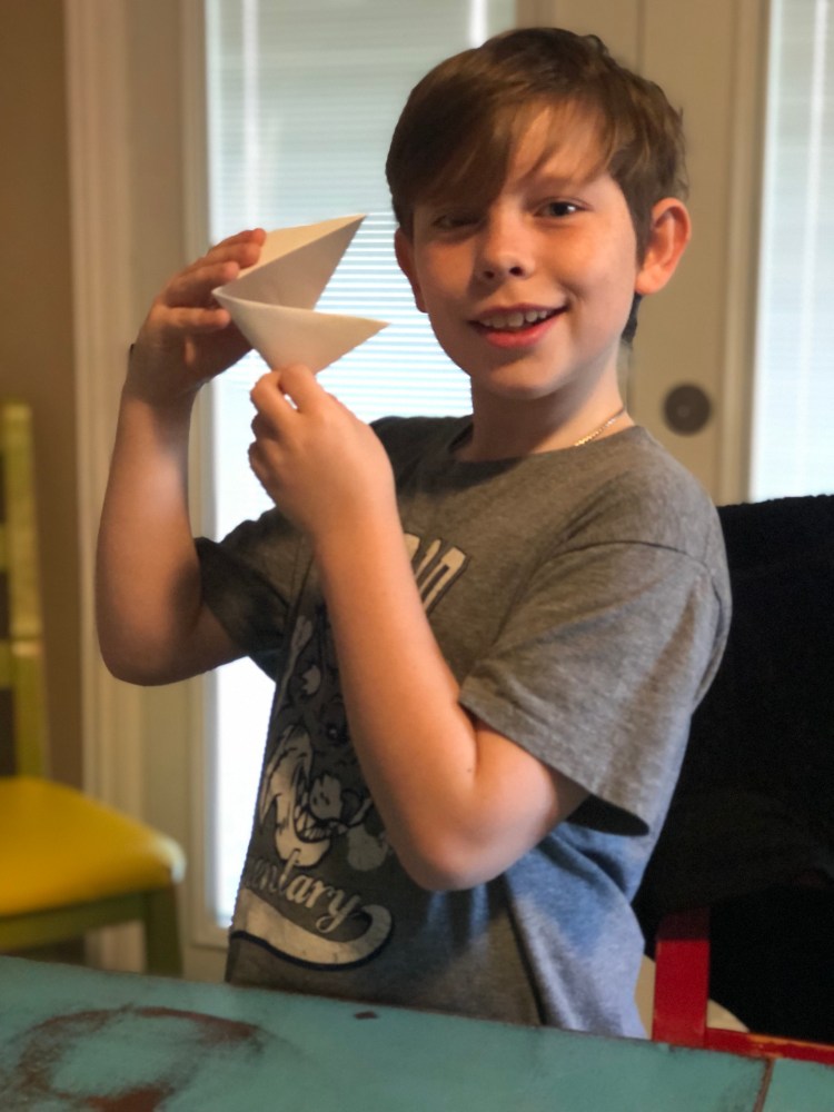 Will woke up this morning and immediately started making Origami. He is super crafty like that….especially when grounded from electronics. Funny how that works. I asked asked him if he wanted to make a video to show others how to do his current favorite project and he was all about it!