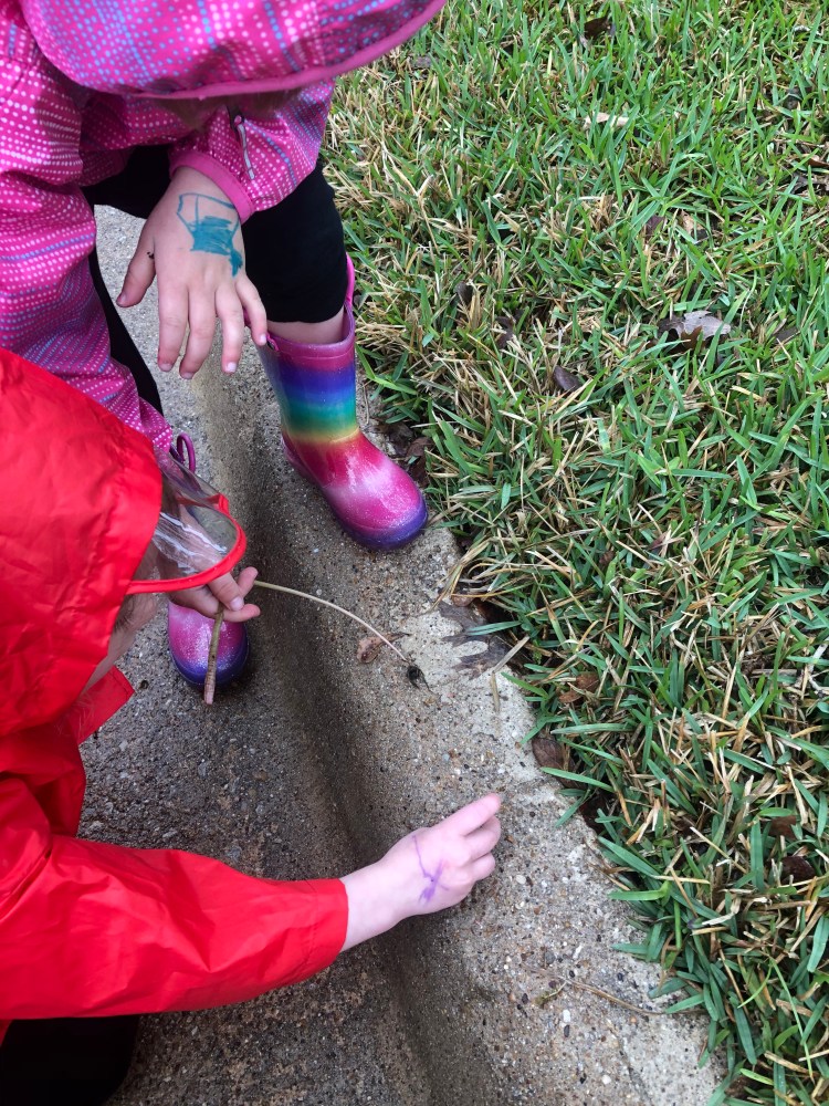- Saved worms from drowning (yes, they found about 20 worms that we saved from drowning in the puddles- Clara isn’t afraid of bugs, worms, or anything creepy-crawly)