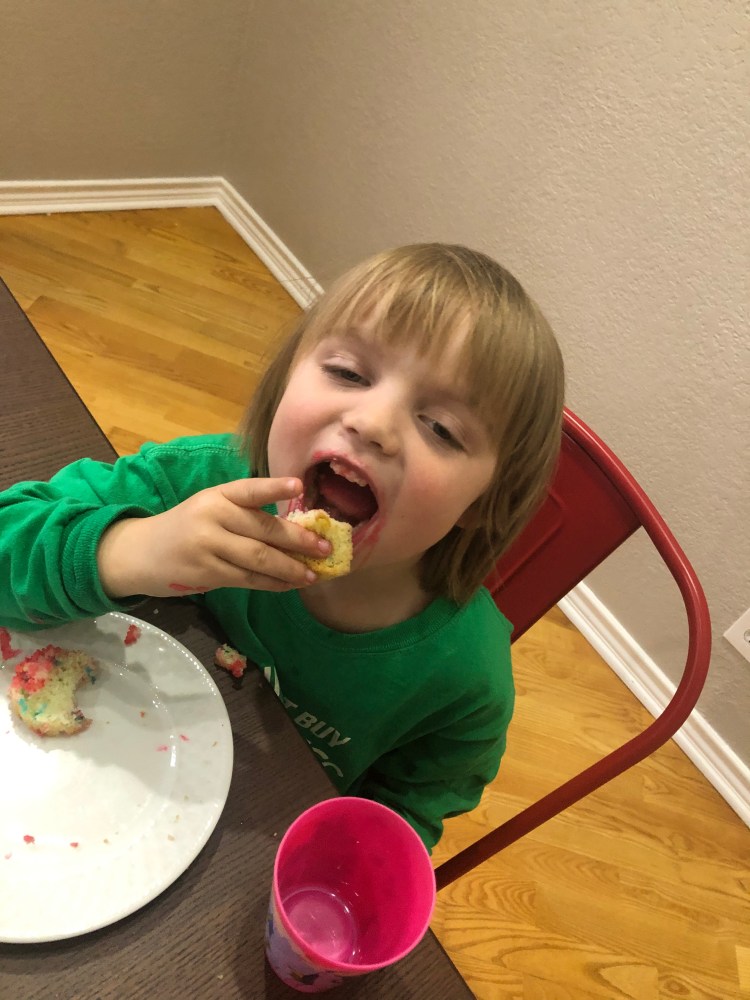 - Anna and I baked cupcakes together for her birthday and each kiddo got to decorate their own cupcakes, complete with their own little bowl of icing (because I KNEW they wouldn’t NOT lick the bowl). It was COLORFUL. That’s probably the best word for it….